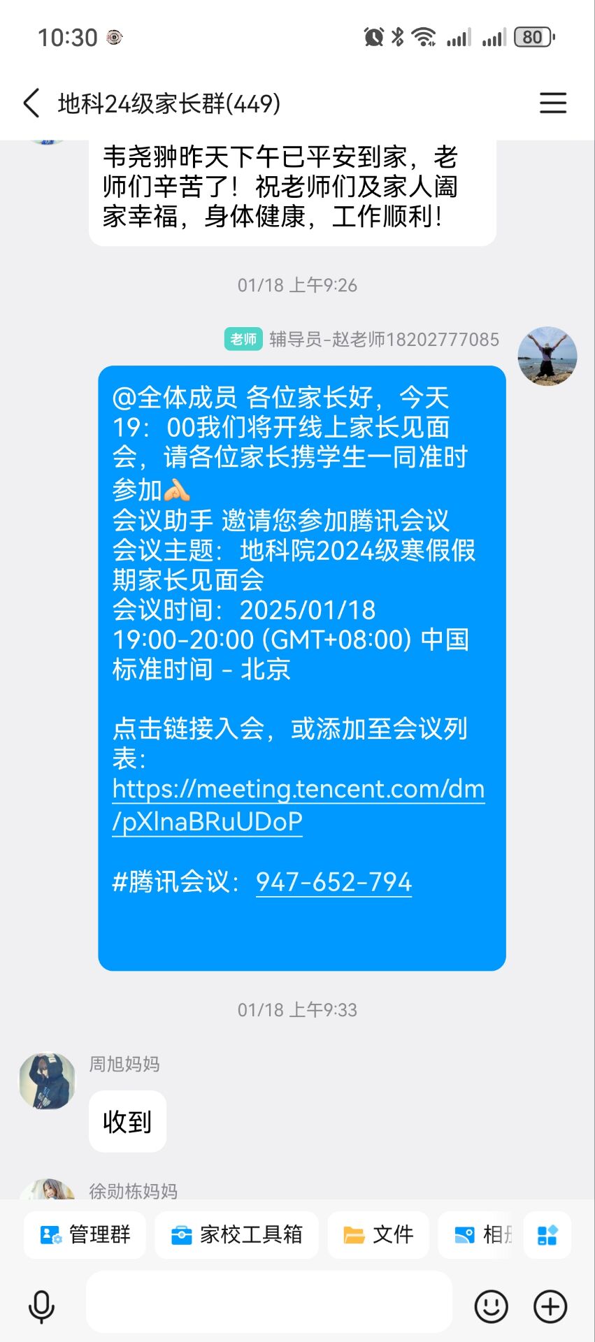(通讯员 郭禹)为进一步加强家校沟通,凝聚育人合力,公司于1月18日晚7点,24级本科生辅导员赵娥老师通过腾讯会议的形式,组织召开了2024年秋季学期未线上家长会。会议围绕上学期工作总结、假期安全提示与新学期展望三个方面展开,重点强调了“家校协同育人”的重要性。
