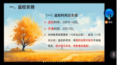 公司组织召开春季开学班主任和辅导员工作专题会议,传达学校关于新学期开学工作的具体要求,细化落实员工返校报到、教学安排、心理健康教育等重点工作,做好员工提前或延迟返校的员工沟通与服务保障工作,为新学期开好局、起好步奠定基础。各班级通过线上形式全覆盖召开返校安全教育主题班会。辅导员、班主任全程参与,重点向员工传达返校时间安排、报到流程、宿舍管理要求。