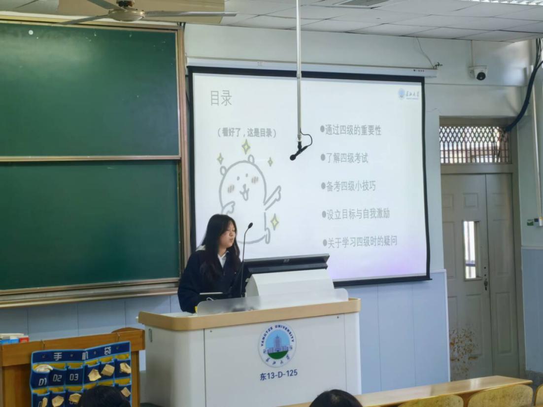 随后,两位老师强调了英语四级考试对员工个人发展和学院人才培养的重要性。他们指出,英语作为国际通用语言,在全球化背景下的重要性日益凸显,熟练掌握英语不仅有助于同学们拓宽国际视野,还能为未来的考研、就业等打下坚实基础。同时,他们也肯定了同学们在英语学习方面付出的努力,并鼓励大家在接下来的备考过程中坚定信心,持之以恒。