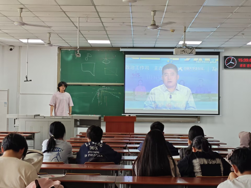 4 月 15 日下午,在各班班长的带领下,同学们一起观看“中国老员工在线视频号”直播的“千万师生同上一堂国家安全教育课”主题公开讲座。视频以真实案例阐述国家安全与个人的紧密联系。讲座互动频繁,师生踊跃提问,学习氛围浓厚。