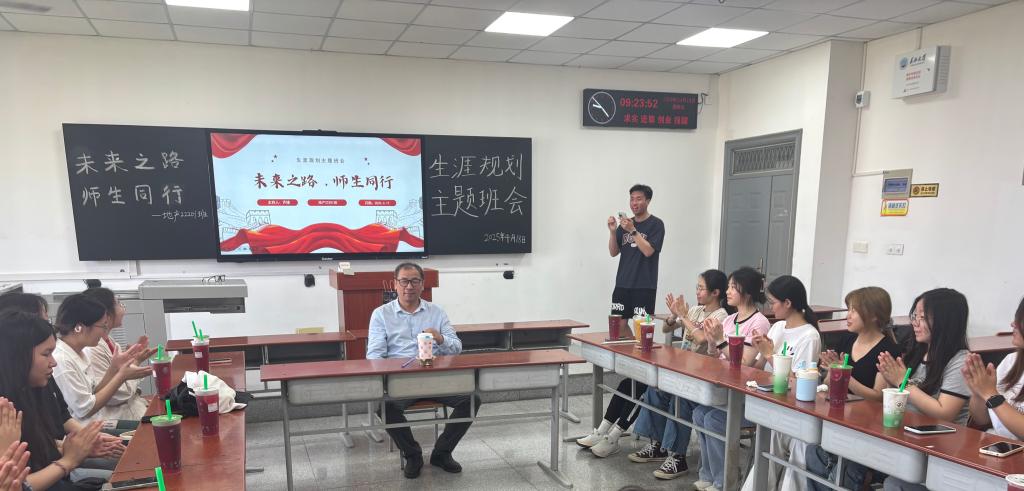 (通讯员梁浩/文 黄乐源/摄)4月18日下午,伟德国际1949官网地信(产业) 22201 班在武教 A-402教室举办了主题为“师生之路 未来同行”的“导师进班会”活动。李功权教授通过深度解析GIS学科前沿与行业趋势,助力员工锚定发展方向。活动由地信(产业) 22201 班班长齐缘主持。
