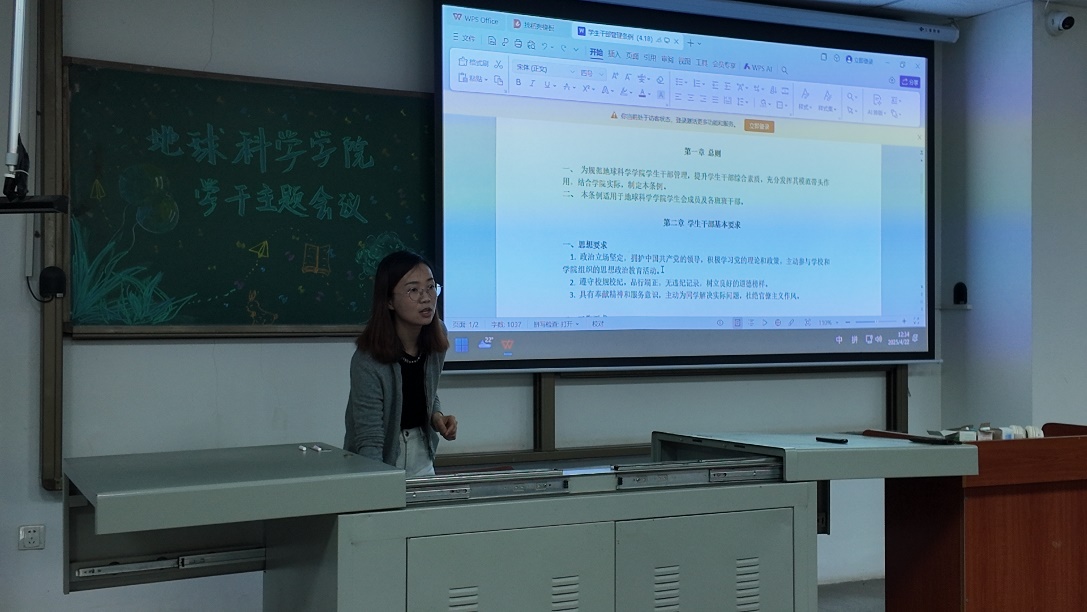 毕浩浩老师就《员工干部管理条例》进行了解读,围绕员工干部的职责定位、个人要求以及考核机制展开阐述。她解释说:“员工干部应明确自身职责,以服务师生为宗旨,强化责任意识,把责任感、使命感作为干好工作的动力,保证工作质量,提升工作效率,为学院发展增光添彩。”