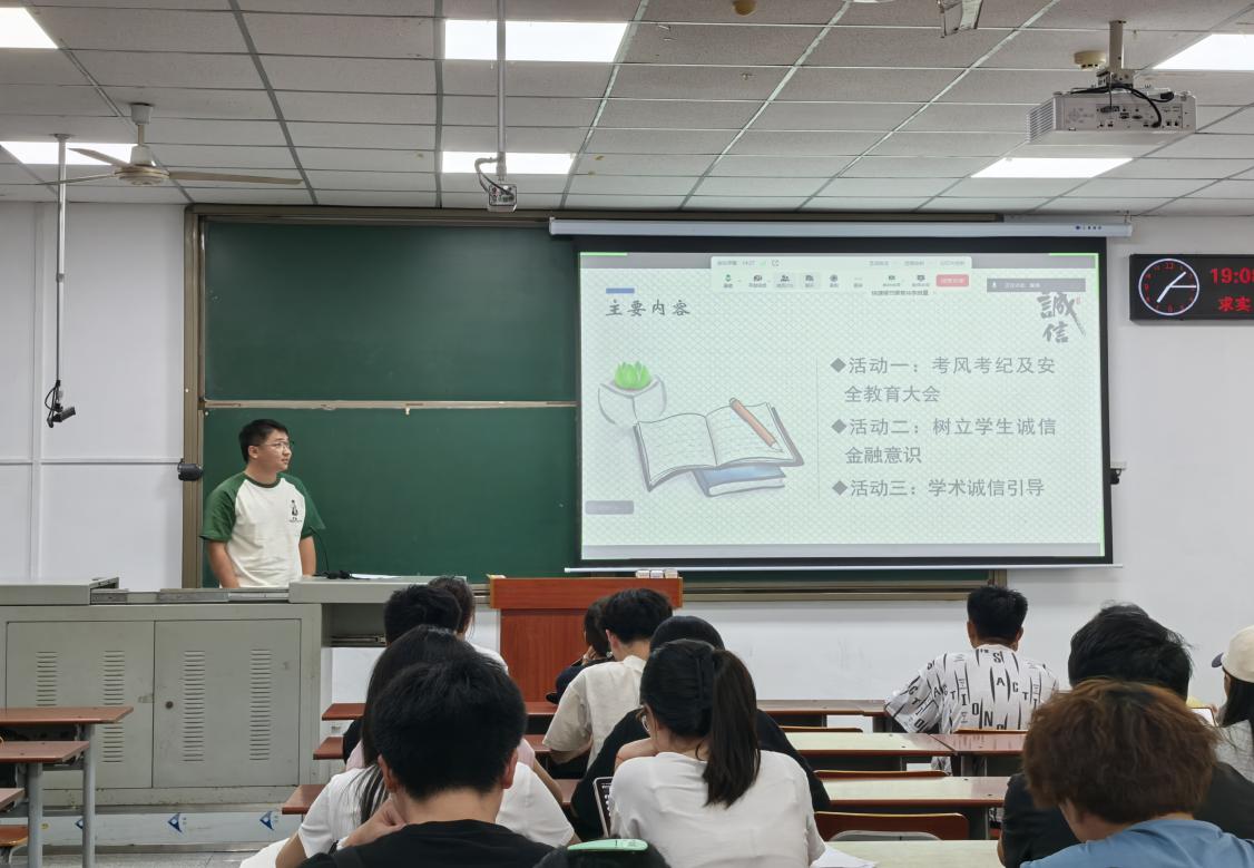 首先,史晓岩领学了《国家教育考试违规处理办法》《伟德国际1949官网员工违纪处理办法》等文件,提醒非毕业年级本科生及研究生扎实复习,诚信应考。并集中观看《湖北省2025年员工资助诚信教育暨金融知识进校园》宣传片,提醒同学们树立诚信金融意识,远离电信诈骗,树立正确的消费观和价值观。针对毕业年级的就业签约问题,黄老师补充强调:“同学们应统筹安排好各用人单位的面试及签约,避免出现无故毁约等恶意行为,加强自我道德约束。”