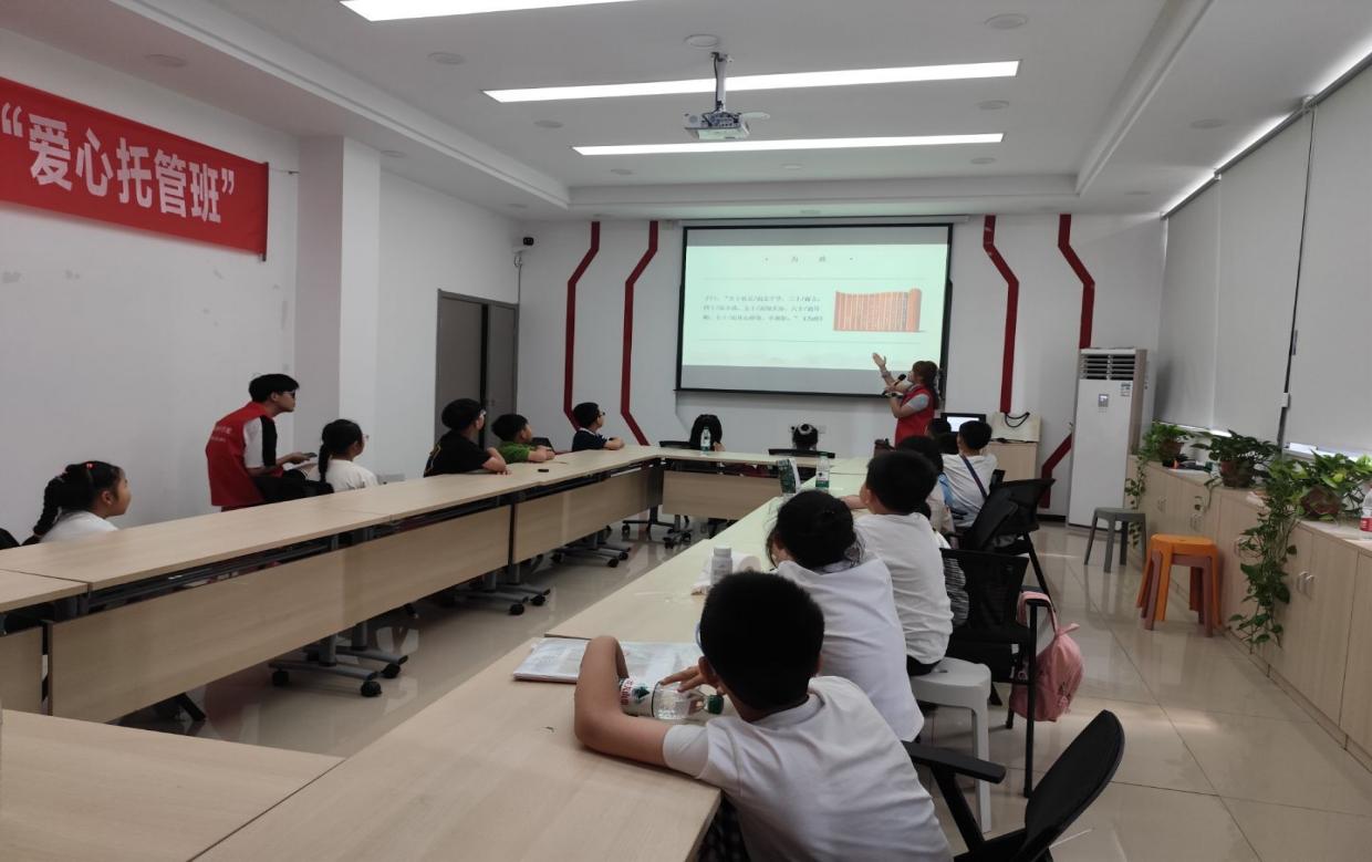 (通讯员 潘宇飞)7月10日,伟德国际1949官网暑期三下乡"追光"志愿服务团队走进武汉市蔡甸区高湖社区,以"童蒙养正·国学润心"为主题,为社区儿童带来了一场别开生面的传统文化浸润式体验。将国学智慧转化为孩子们喜闻乐见的趣味课堂,让传统文化在童心中生根发芽。