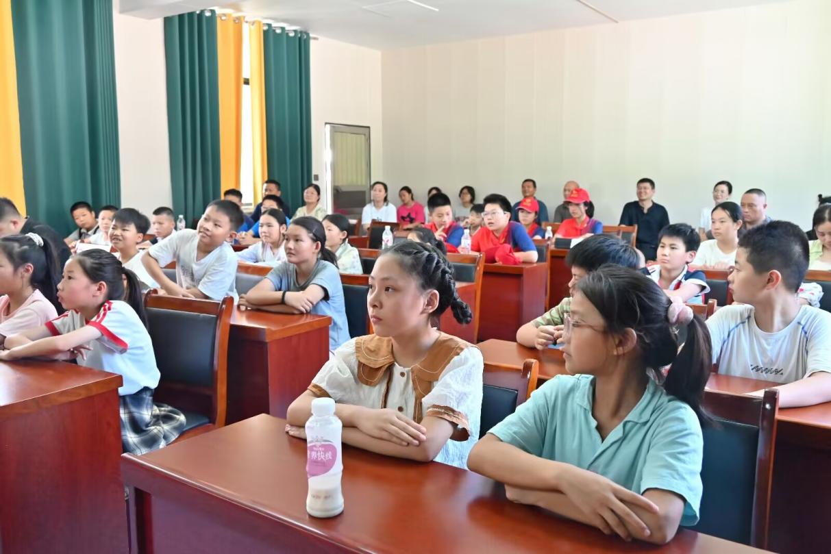 青石实验小学盖天校区坐落在蕲春县东北部山区,距县城约50公里,地处偏远,交通不便。全校500多员工 留守儿童占比80%,孩子们长期缺乏父母陪伴,学习资源也相对匮乏。斑驳的墙皮、掉漆的课桌椅构成了孩子们最主要的学习空间。所幸,来自外界的关爱并未缺席,为了丰富孩子们的精神世界,拓宽他们的视野,公司“追光”志愿服务队带着"国学润心 科普启智"的特色课程走进了校园里唯一配备空调和多媒体系统的现代化会议室,也是整个校园最珍贵的教学空间。