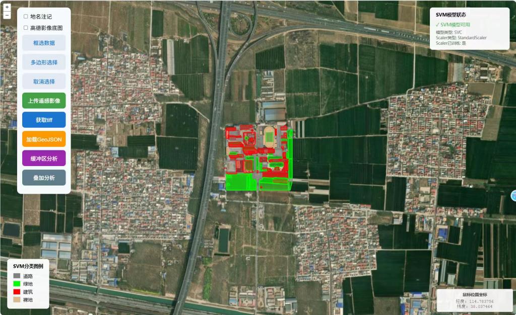 期末考试结束后,同学们迅速进入3S实训状态。根据个人兴趣和课题方向,全班同学在五位老师的指导下分为五组,第一周重点学习深度学习、机器学习等核心算法,系统掌握GIS空间分析与WebGIS全栈开发关键技术。第二周集中推进项目落地,初步完成系统框架与原型构建。王庆老师指导小组成员对洛杉矶多期火灾遥感影像进行标注与样本训练,初步构建出变化检测模型。井然老师带领小组的同学们采集管道周边地形与地物数据,通过机器学习算法实现地物分类。