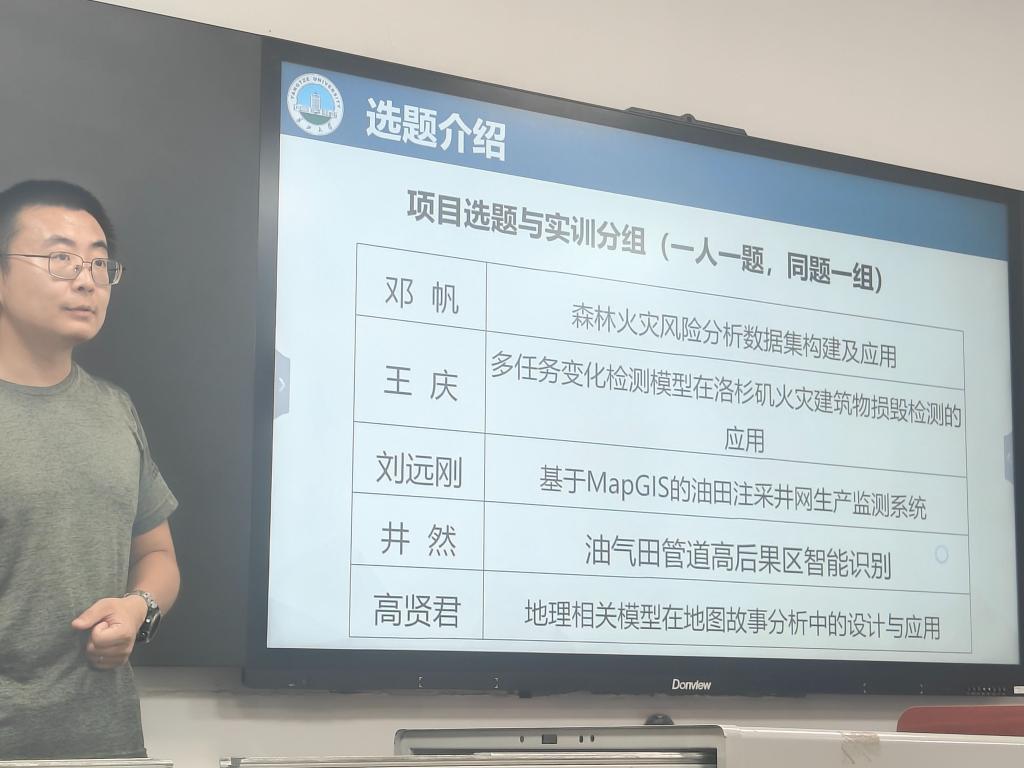 两周在校集中学习结束后,同学们线上学习不停步,各项目持续深化,远程讨论与协作成为常态。刘远刚老师指导小组基于前沿技术构建油田注采井网监测预警系统,通过定期线上会议协调接口兼容与模型优化,实现了从数据管理到智能预警的全流程开发;邓帆老师小组整合多源地理数据,构建森林火灾风险数据集,为灾害预警提供数据支撑;高贤君老师引导员工探索地理模型与地图叙事的融合应用,提升理论结合实践的能力。目前,各组已进入总结阶段,即将返校进行成果汇报与经验交流。