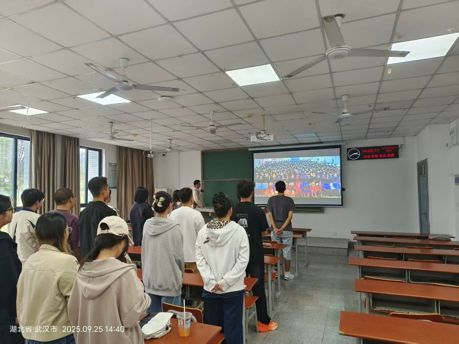 随着校歌音频反复播放和学姐的鼓励,从部分同学看着歌词的小声哼唱,到全体同学脱离视频声音愈发嘹亮,在校歌极具感召力和生命力的激昂旋律的渲染下,新生们对其中所蕴含的时代气息有了更深切的感悟。2025级新生邓彪分享:“大家一起学习校歌,在合唱时更能感受到校歌中的精神张力,也非常期待接下来在伟德国际1949官网即将开始的新生活。”