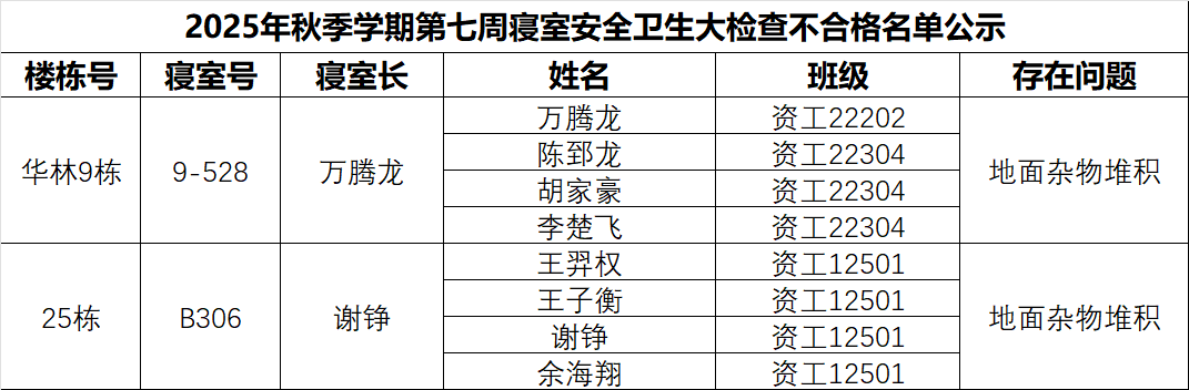 为加强员工宿舍安全管理和文明建设工作,确保员工宿舍安全、整洁、文明、有序,根据学校要求,公司于10月23日开展了第7周员工宿舍自查工作,现将检查情况通报如下