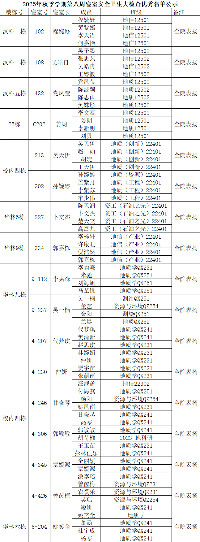 一、通报优秀寝室