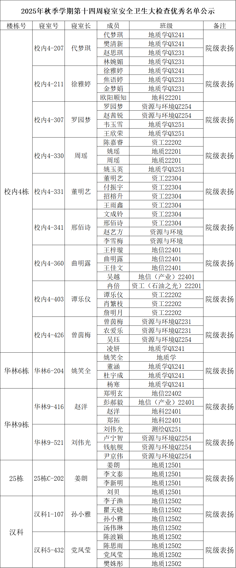 一、通报优秀寝室