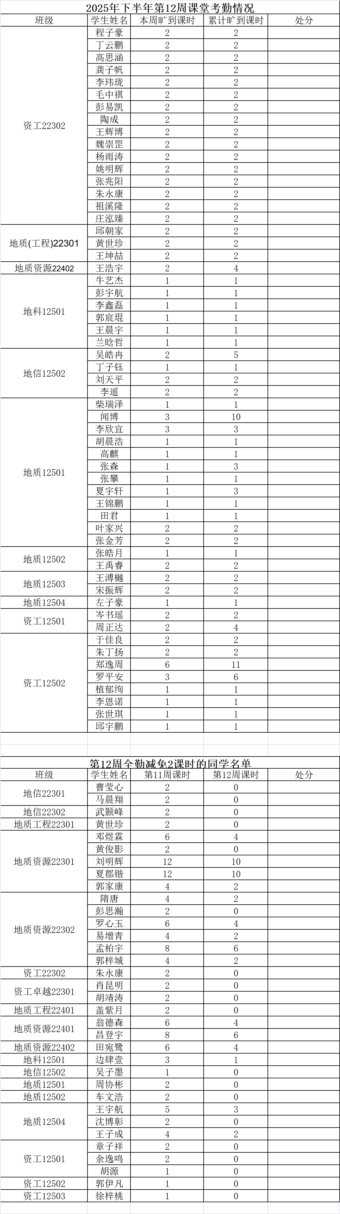 为落实学院关于加强学风建设的相关要求,进一步规范课堂秩序,营造良好的学习氛围,公司持续开展常态化课堂考勤工作。现将第十二周考勤情况通报如下: