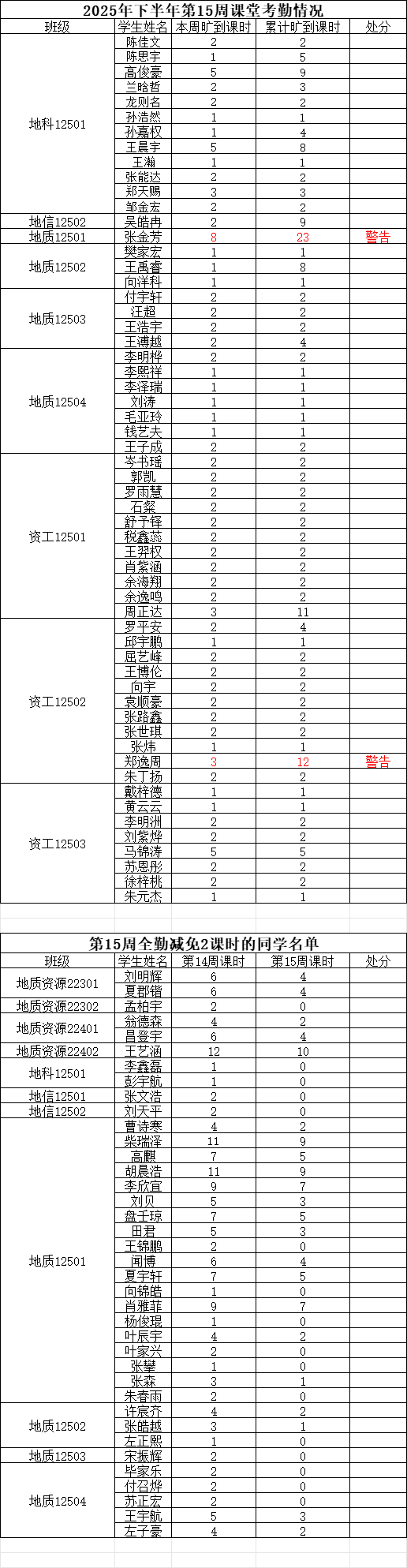 为落实学院关于加强学风建设的相关要求,进一步规范课堂秩序,营造良好的学习氛围,公司持续开展常态化课堂考勤工作。现将第十五周考勤情况通报如下: