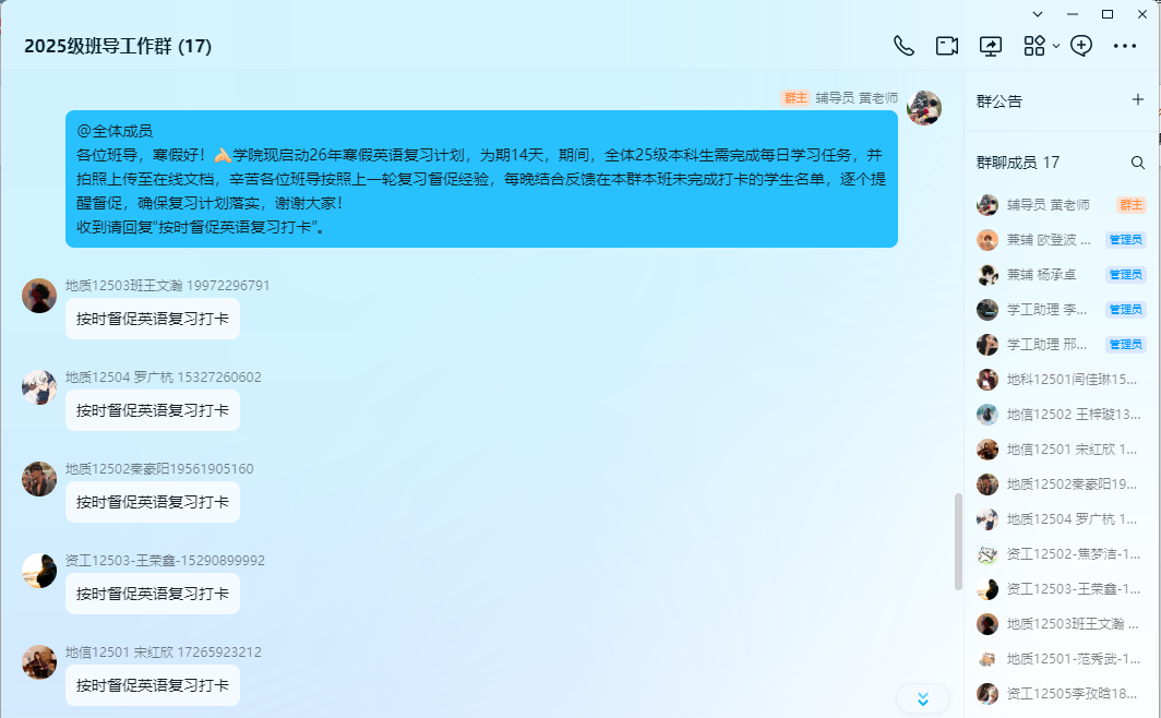 (通讯员 黄瑱)寒假第一周,25级员工就收到了 “寒假英语学习加油包”。本轮英语学习计划通过联动家长、班主任、班导,构建多层次、立体化的督学支持体系,推动员工度过一个充实高效的寒假。