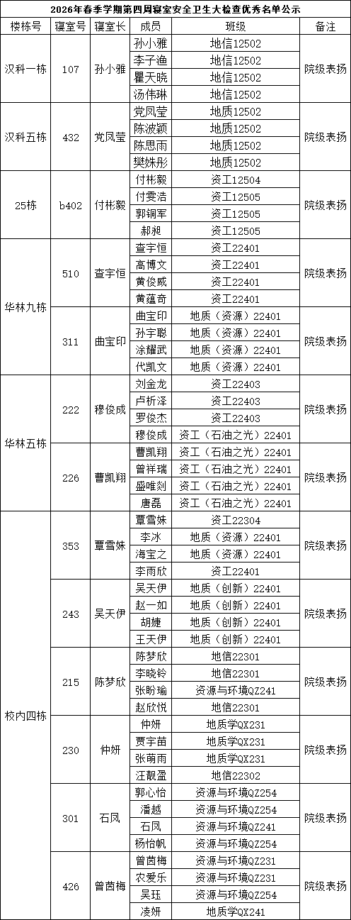 一、通报优秀寝室