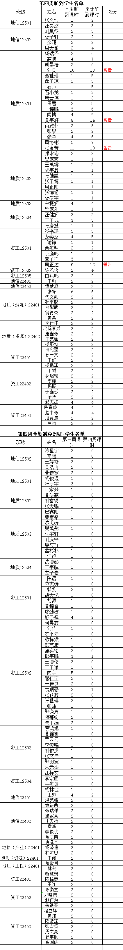 1. 旷课达到12学时,给予警告处分;