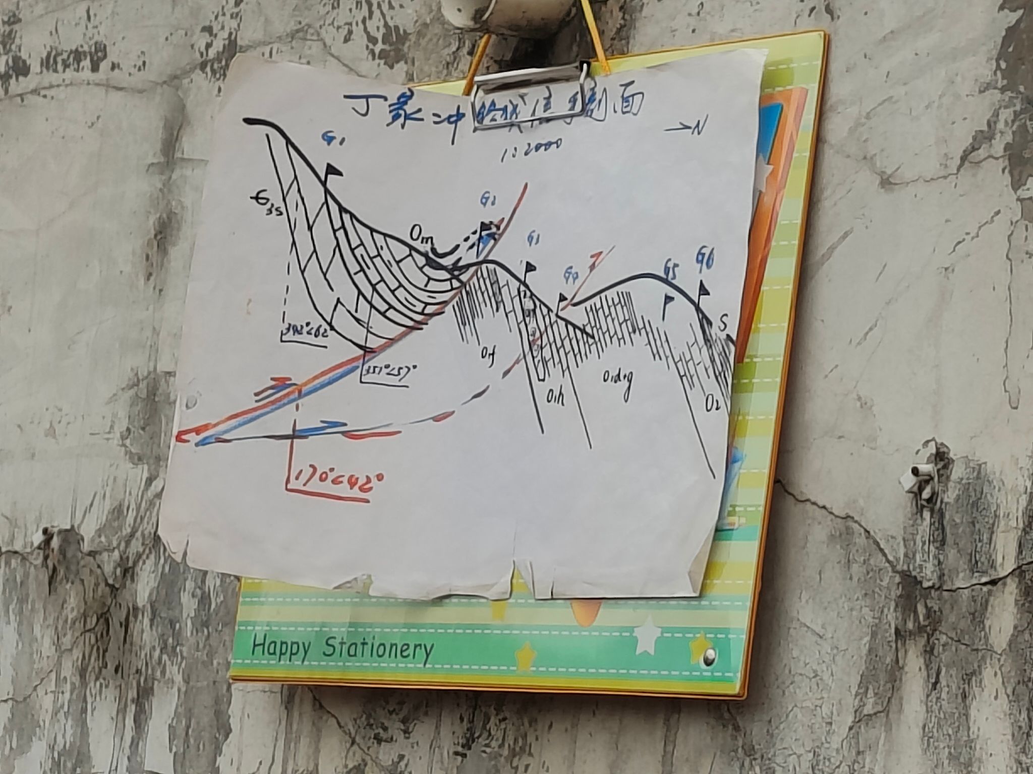 野外的课堂,永远是最生动的。在丁家冲的实测剖面前,我们蹲在岩层旁,用罗盘测量产状,用放大镜观察岩性,把眼前的地层一一记录在剖面纸上。图里的每一条线、每一个符号,都对应着一段地质历史:从褶皱的形态判断构造应力方向,从岩层的接触关系分析沉积环境的变迁,从产状数据里还原地层的展布规律。曾经抽象的地质图,此刻变成了可以触摸、可以解读的“地球日记”,让我明白地质工作从来不是纸上谈兵,而是用脚步与数据,解码大地的语言。